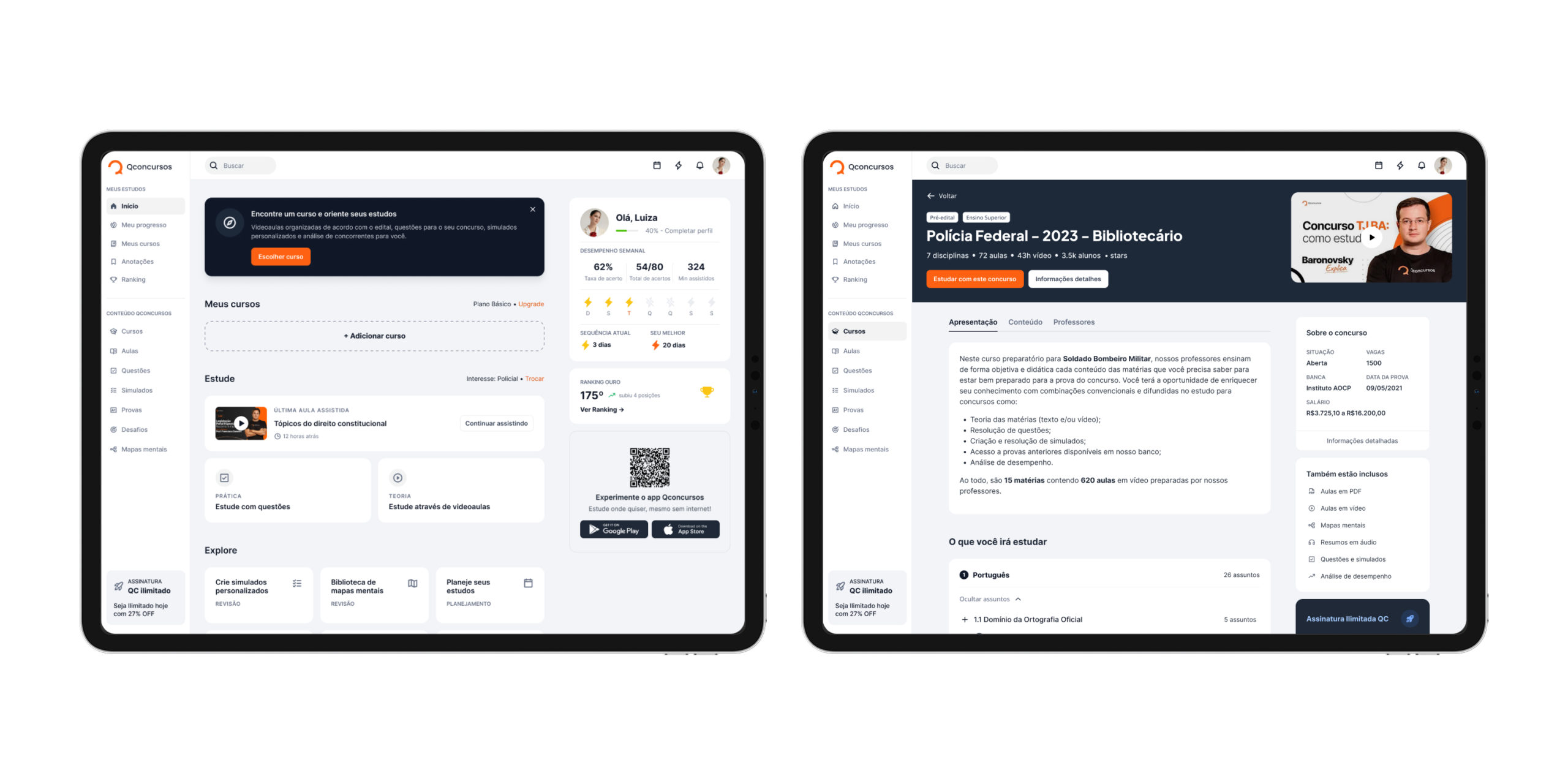 The project aligned product experience with business strategy and reinforced QConcursos’ positioning as a comprehensive learning platform.